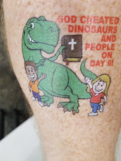 The morning went well, and even got my hands dirty giving kids dinosaur tattoos. I really love giving kids tattoos because it’s about the only time I can talk with kids on a one-on-one basis. But in putting the tattoos on, I have about a minute to share something with them. Even the adults get at least a dinosaur million dollar bill. But I usually talk about the Ark, that it’s 450 ft long, 75 ft wide, and 7 stories high. That you can fit over 500 shipping containers inside — that there was more than enough room for people, animals, food, and supplies. In fact, only one-third of the ship was dedicated to the animals. I enjoy talking with the teens as well while giving tattoos. I show them that the ark is a picture of Jesus Christ — that just like there is one door of the ark for people to walk through to find salvation from the flood, that Jesus is the only Door to find salvation from eternal damnation. Most kids, teens, and adults have at least heard of the story — but to put it in the context of the New Testament, most never understand the relationship.