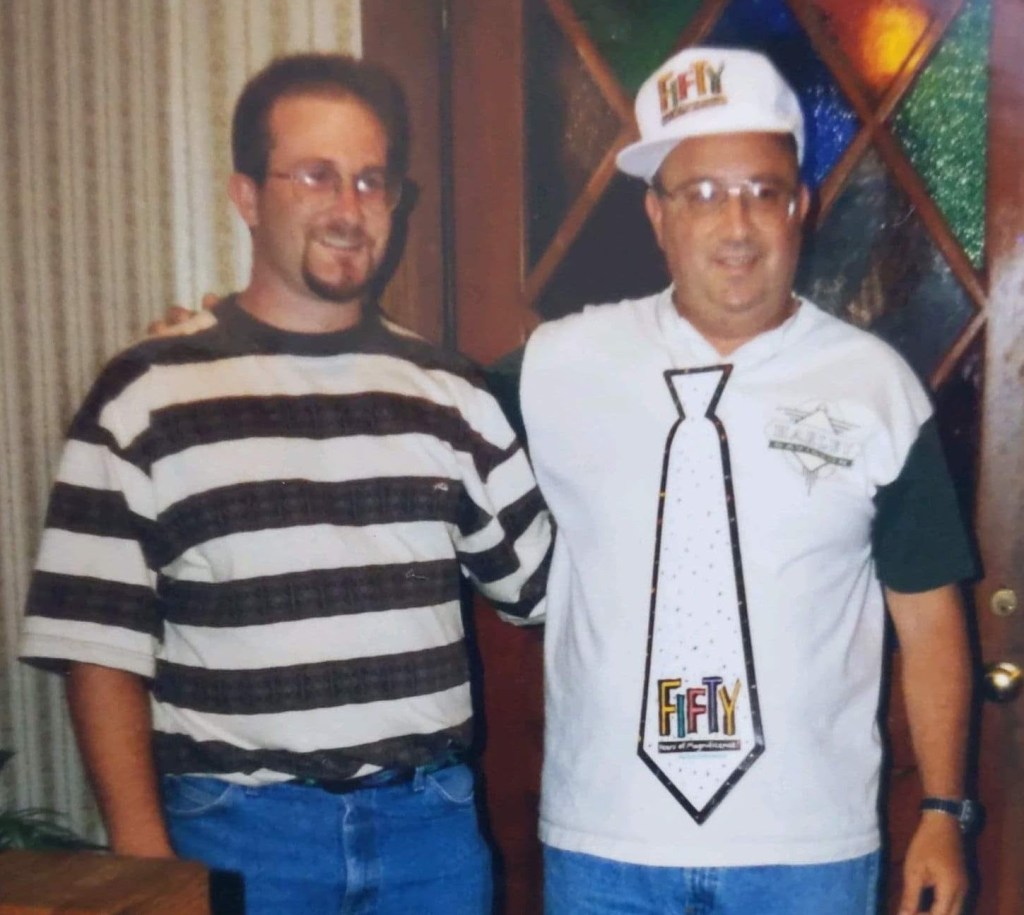 The picture above is of my father and I taken across the street at my aunt and uncle’s house. I was told to bring my dad over to surprise him for his 50th birthday; he was told to bring me over to celebrate my leaving for Indiana State University at the end of the month. The funny thing is that we were both right, and did our diligence to get the other one there on time.