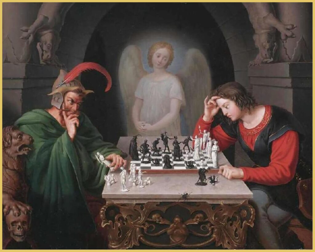 Before the advent of the internet, memes, and even the printing press, artists employed the medium of painting to convey narratives that often evolved into significant works of art; their mastery in transforming a two-dimensional canvas was remarkable. The application of shading, facial expressions, body language, and tonal variation evoked emotions that resonated with the viewer. A notable example of such artistry is “Die Schachspieler,” also known as “Checkmate,” created by the artist Friedrich Moritz August Retzsch (1779-1857). Watch the following video on this masterpiece.