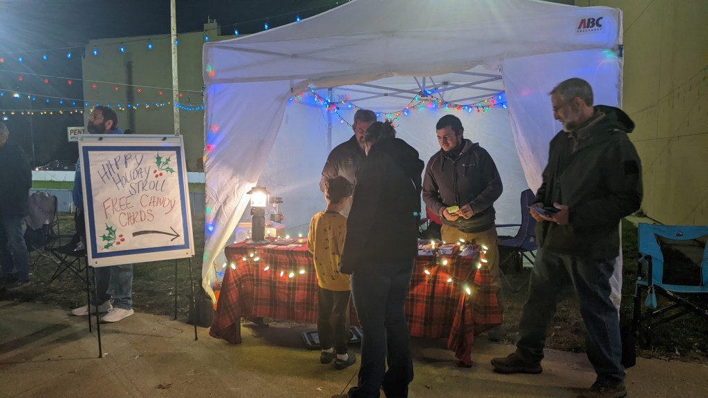 This year, we experienced an amazing level of support compared to past years! My wife Lisa and I reunited with Paul, and she gladly joined an elderly couple from Paul’s church to share candy, tracts, and hot chocolate with everyone inside the store. I was excited to bring along my pastor, Brent; Nik, a man I’ve been mentoring; and our esteemed eldest elder, Kerry, who was an asset praying and bringing people to our booth who would have walked past without noticing.