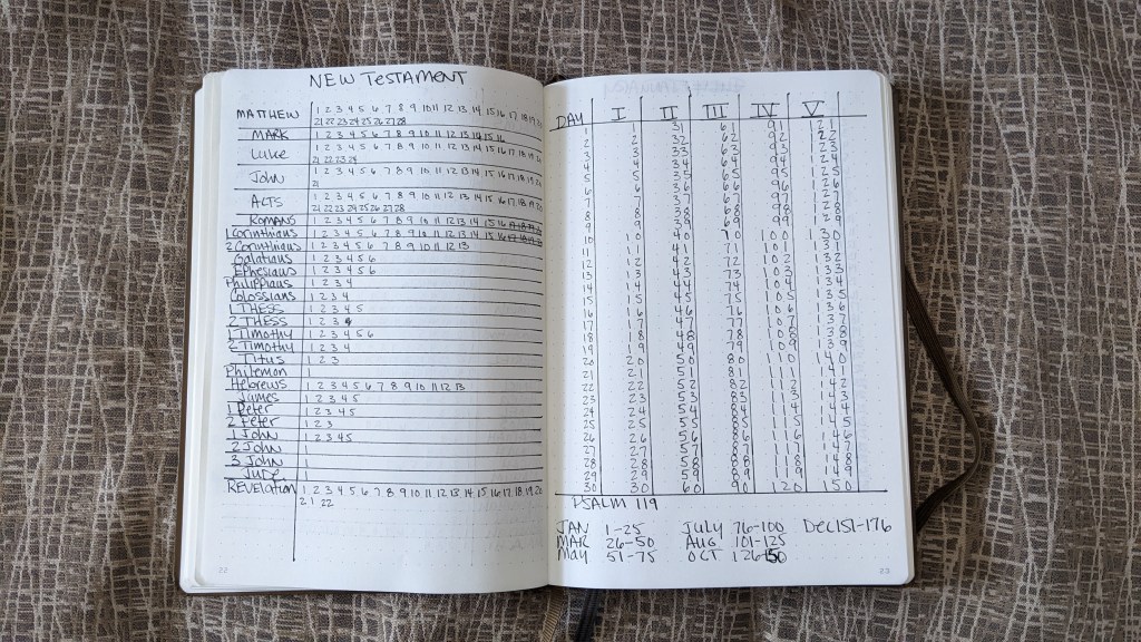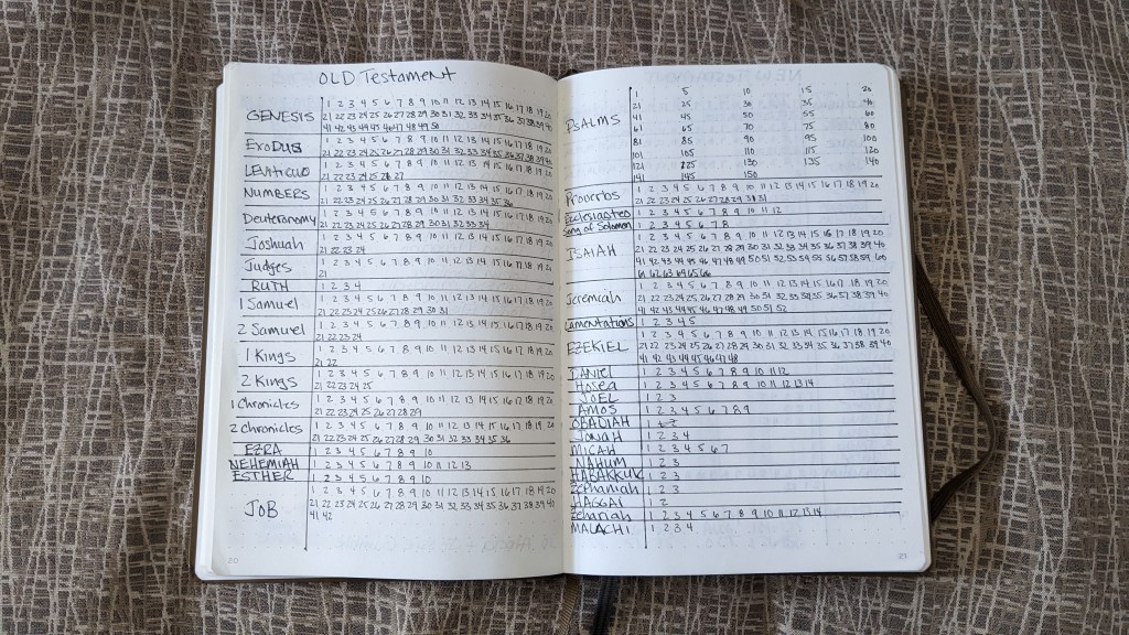 - I’ve developed my own effective system for tracking my Bible reading by incorporating dedicated pages in my yearly bullet journal. This method keeps me organized and allows me to monitor how many books I’ve read. My preferred choice for journaling is always the Leuchtturm 1917. Here are some pictures.