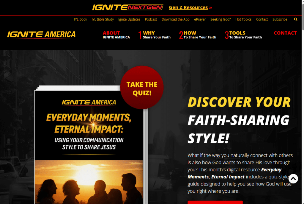 Not only that, but you can take Ignite America wherever you go with their app available in the Apple App Store or Google Play. On it, you will find inspirational videos to practical resources to help you engage people in faith conversations and help move everyone, every day closer to Jesus.