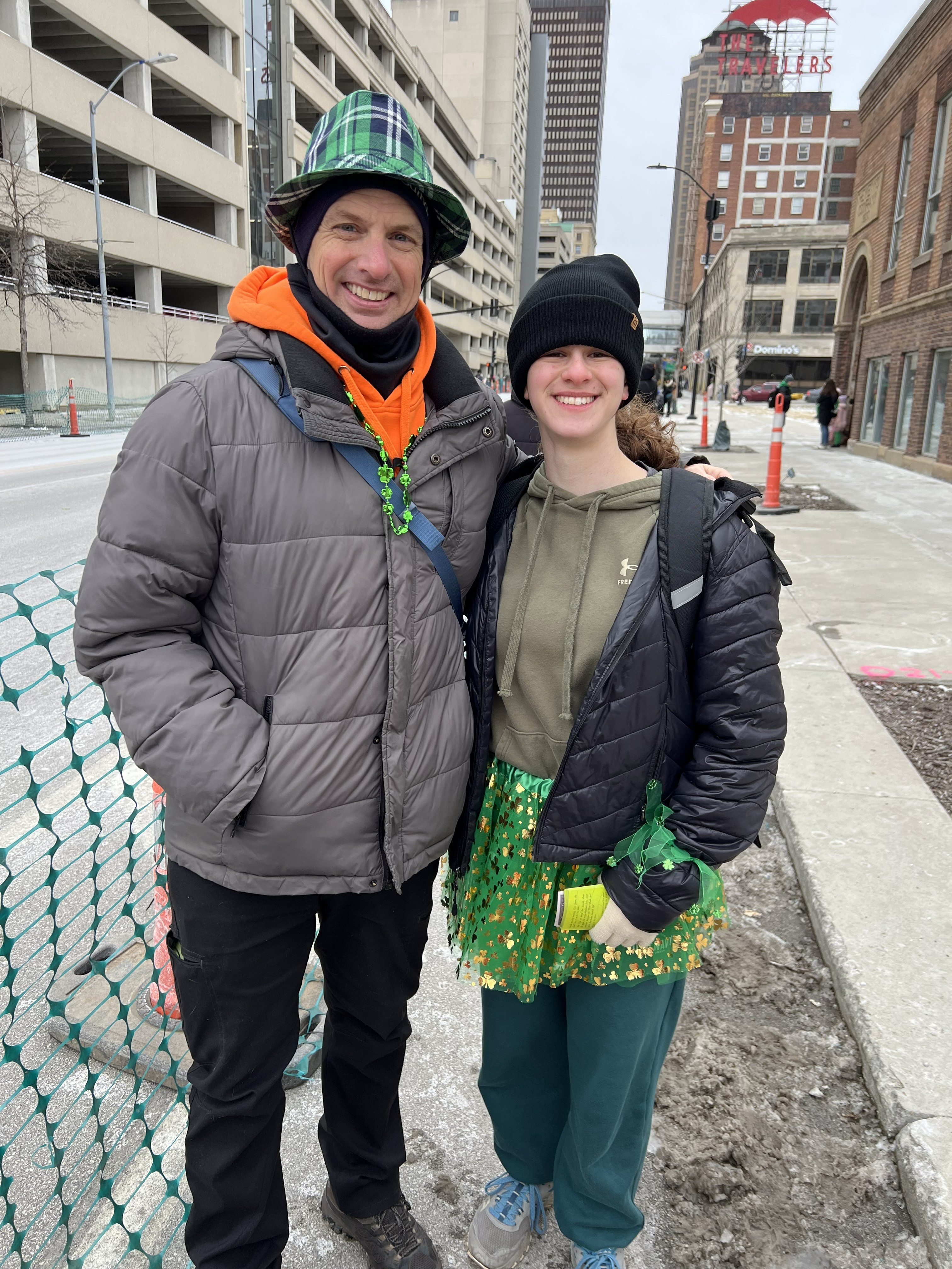 My group thought it was best to hit the skywalk not only for the larger crowds, but to get out of the cold. As we weaved through the suspended tunnel, we caught not only those dressed in green waiting for the parade, but the people stuck working on the holiday heading to their lunch break.